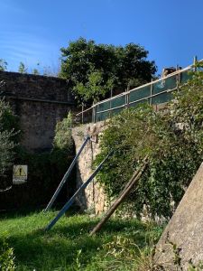 - realizzazione di nuova fondazione e nuovo muro contenimento in C.A.; la struttura in cemento armato sarà costruita a monte e sotto la posizione del muro attuale, in modo tale da renderla invisibile dall’esterno.